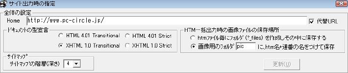 公開するページの URLを記入して下さい 又、ここで出力したサイトをURL代替で使用するのであれば、URL代替のチェックをオンにして下さい (文書データーベース内の一部を出力した場合に、出力対象外のページへのリンクをURLで置き換える 代替URL |