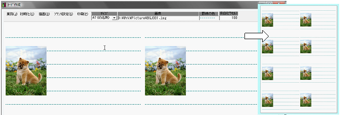 店舗などで使うカードを作ります A4横の4分割(ハガキサイズ)と、A4縦の8分割(カードサイズ)を作ります