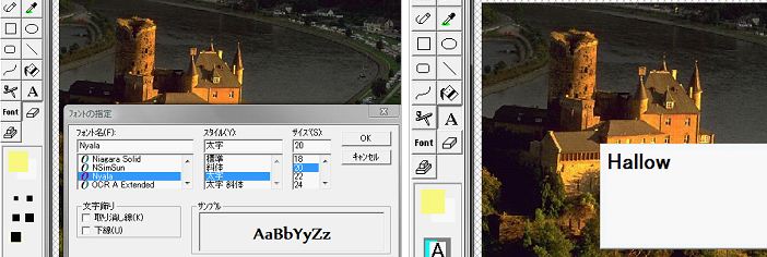 画像に文字をのせる場合は、あらかじめフォントと文字色を指定しておいて下さい