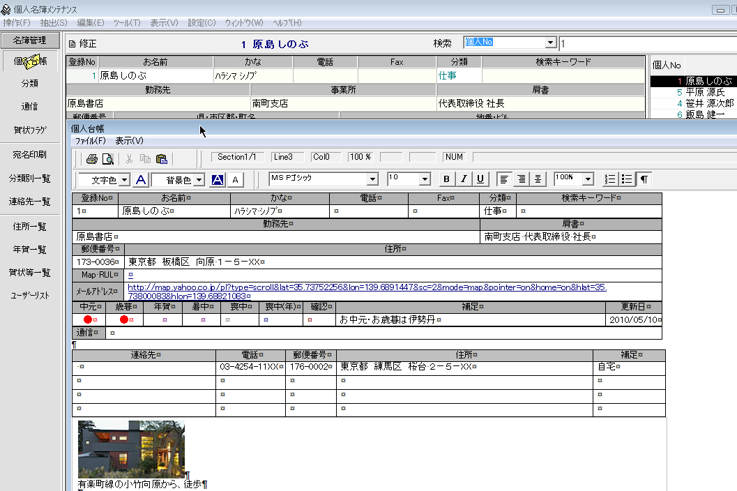 この画面から直接、宛名印刷ができます (adAtenaがインストールされている必要があります)