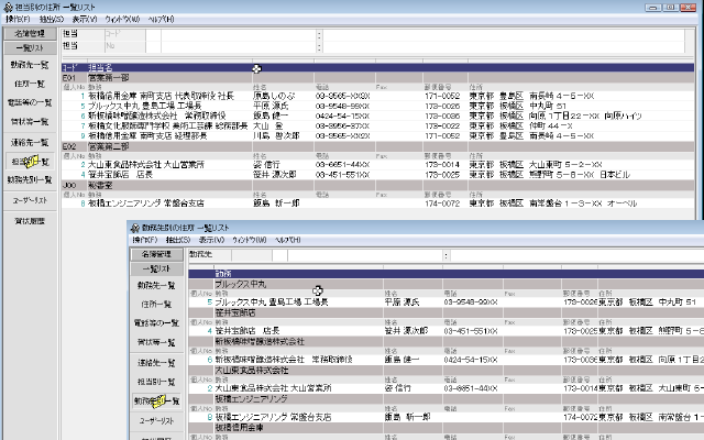 勤務先一覧・住所一覧・電話番号等の一覧・賀状等一覧