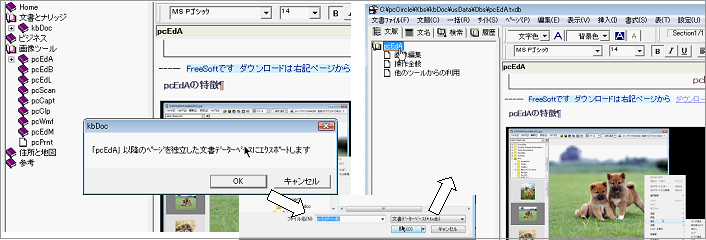 文書データーベースの指定のノード以下の内容を、独立した文書データーベースにエクスポートできます