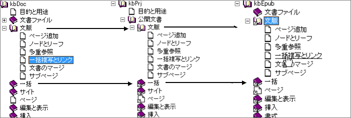 このサイトのkbDocの説明と kbEpubの説明でも、同一の内容はリンクとなっています