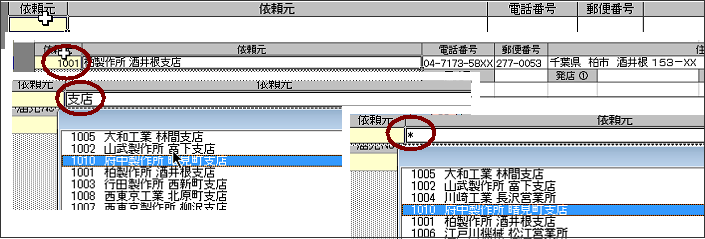 依頼元番号を入力するか、依頼元の宛名のセルで、宛名の一部又は*(アスタリスク すべてリストアップ)を入力して下さい