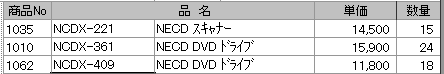 DX,361の指定ですと、商品記号に "DX"と"361"を含むものを抽出しいう指定となります
